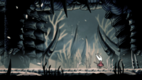 Hornet apparaît également en haut des Abysses, après que le Chevalier ait acquis la Cape des ombres et soit revenu sain et sauf. Elle pense désormais que, puisque le Chevalier est remonté des Abysses indemne, il a le choix de prolonger la stase d'Hallownest ou de combattre le coeur de l'Infection.