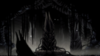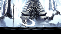 | Aussi connu sous le nom de "Shade Lord" (Seigneur de l'Ombre) dans les fichiers du jeu, Le Vide qui a un esprit est un gigantesque être de pur Vide, le Chevalier se transforme en ce dernier afin de terminer le Panthéon d’Hallownest. Appelé «Dieu des dieux» par le Chercheur de Dieux. | |