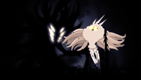 Le Chevalier brise ensuite sa coquille et attaque Radiance sous sa forme d'Ombre. Radiance est ensuite attirée dans le Vide et consommée par lui. Ensuite, les Ombres des Abysses sont vus rentrant à l'intérieur du sol.